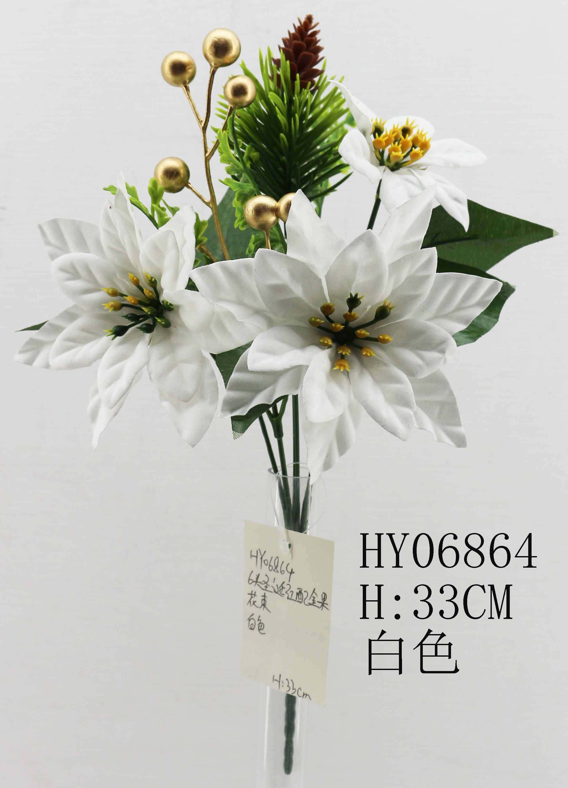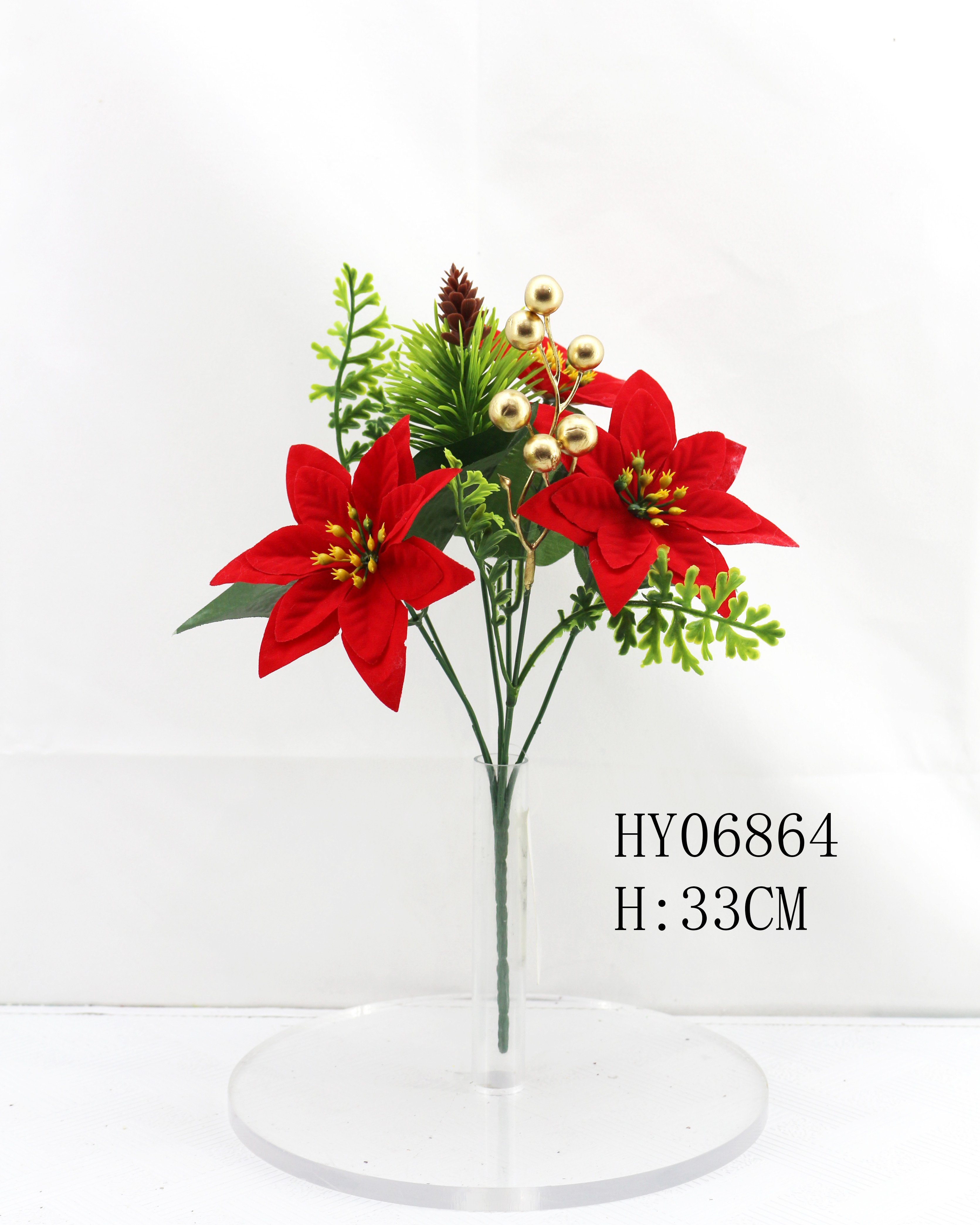 HY06864 6头圣诞红配金果花束