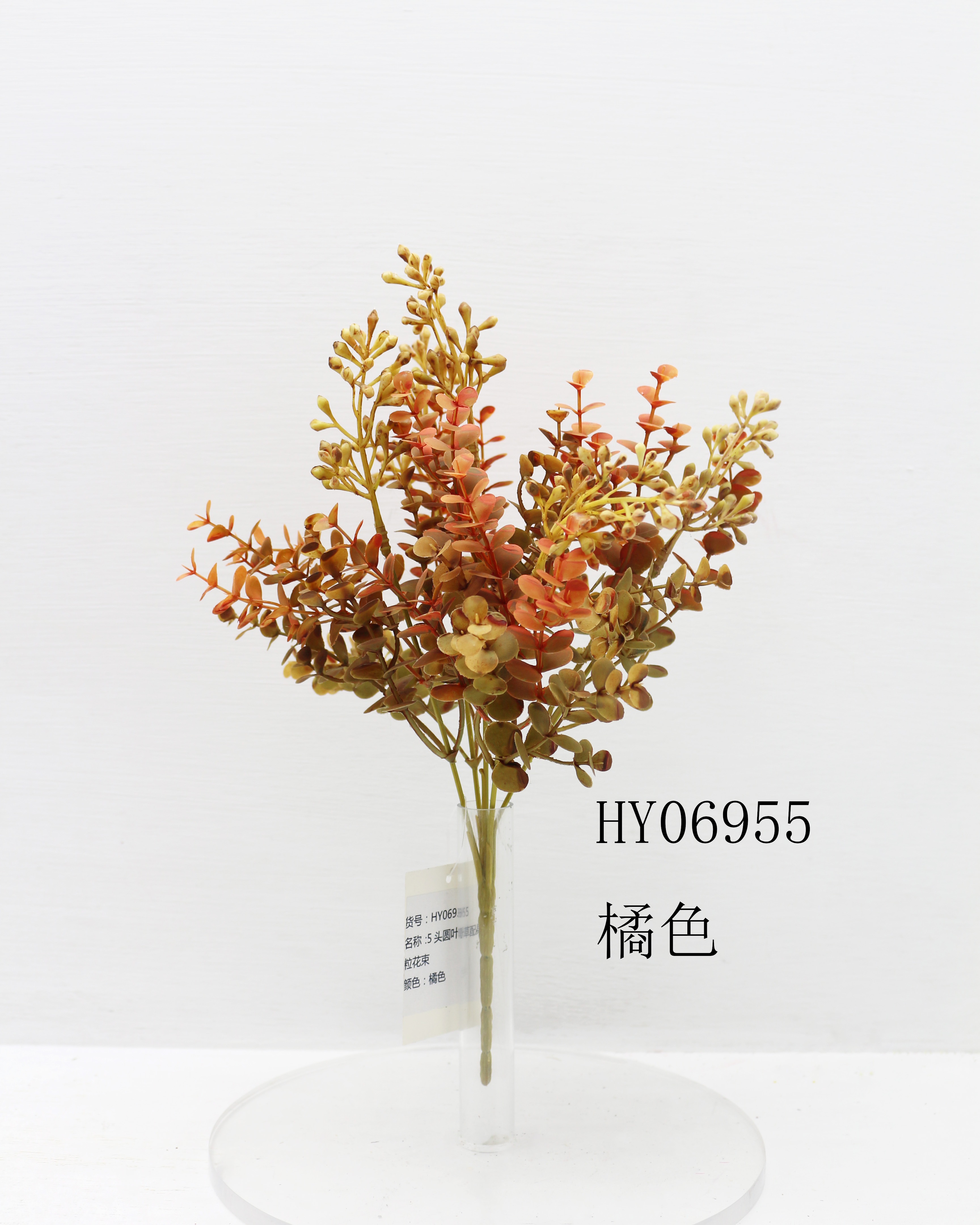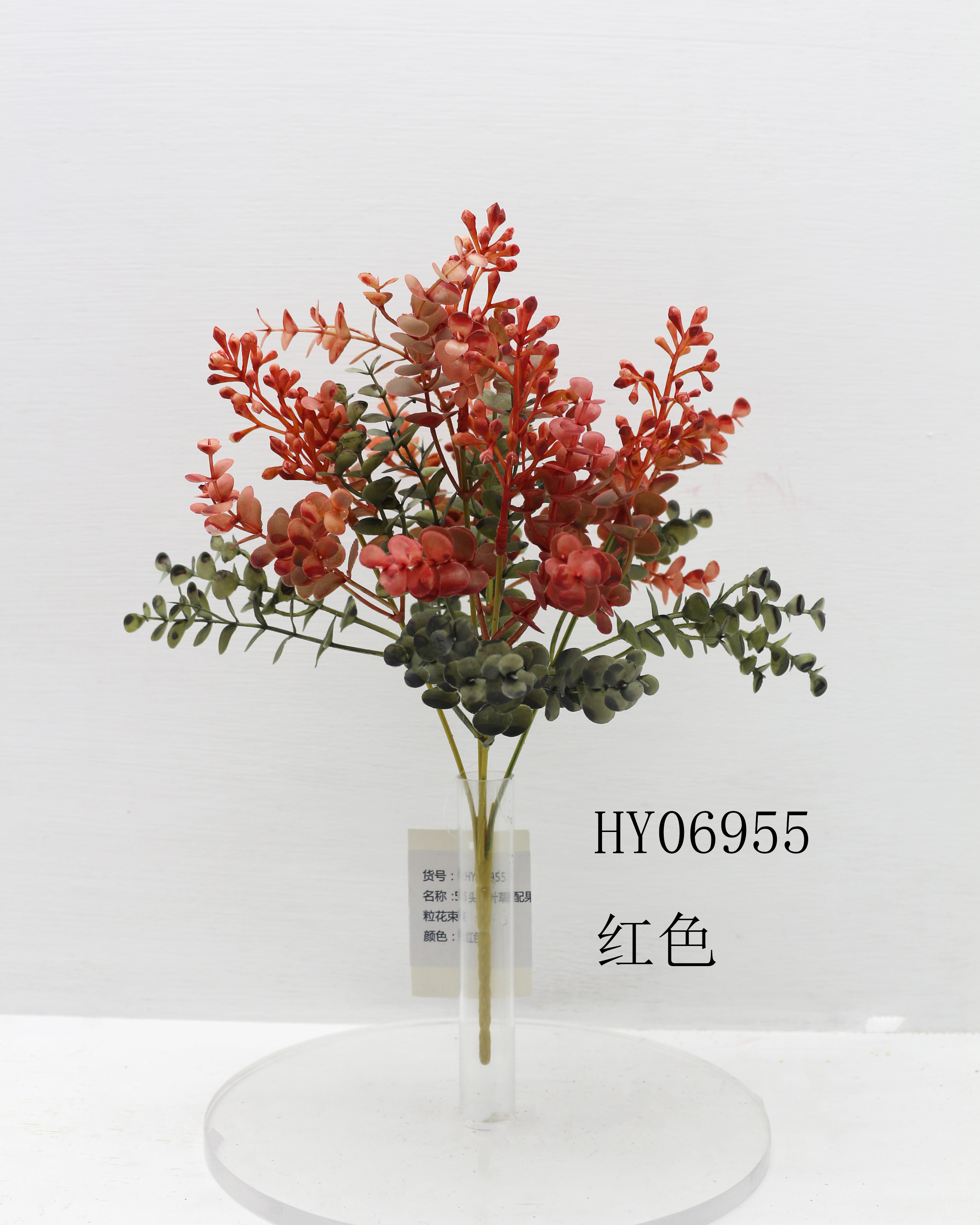 HY06955 5头圆叶草配果粒花束