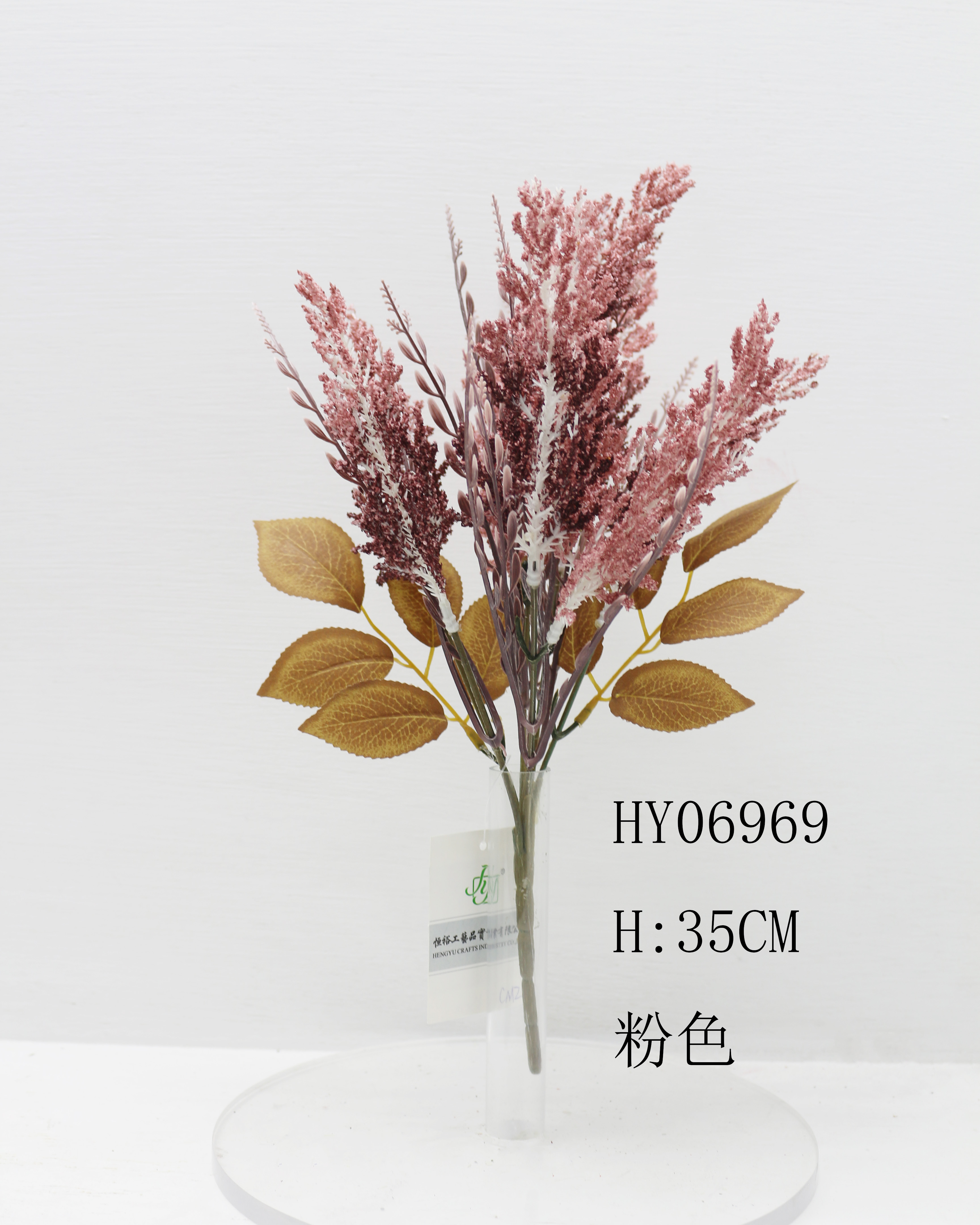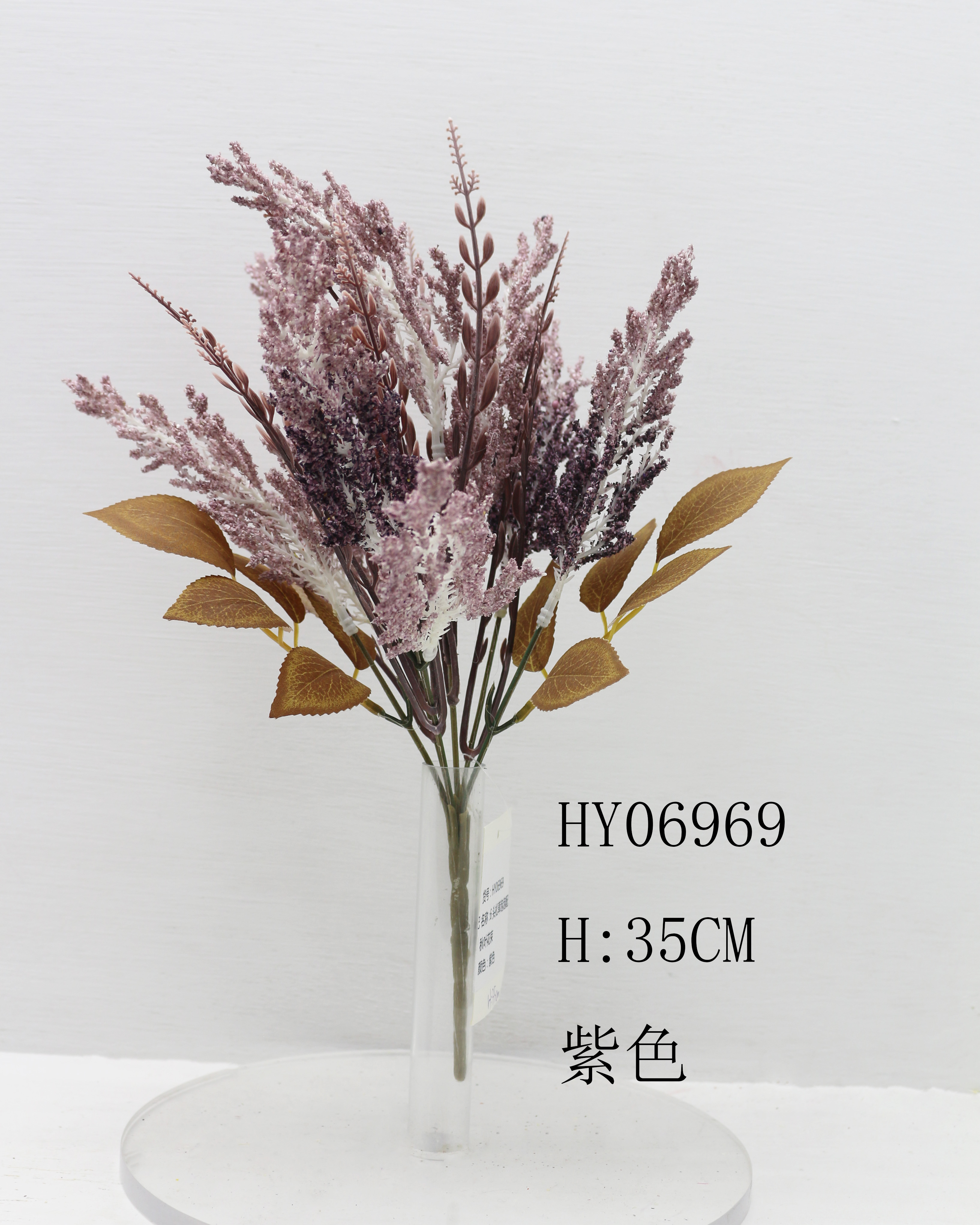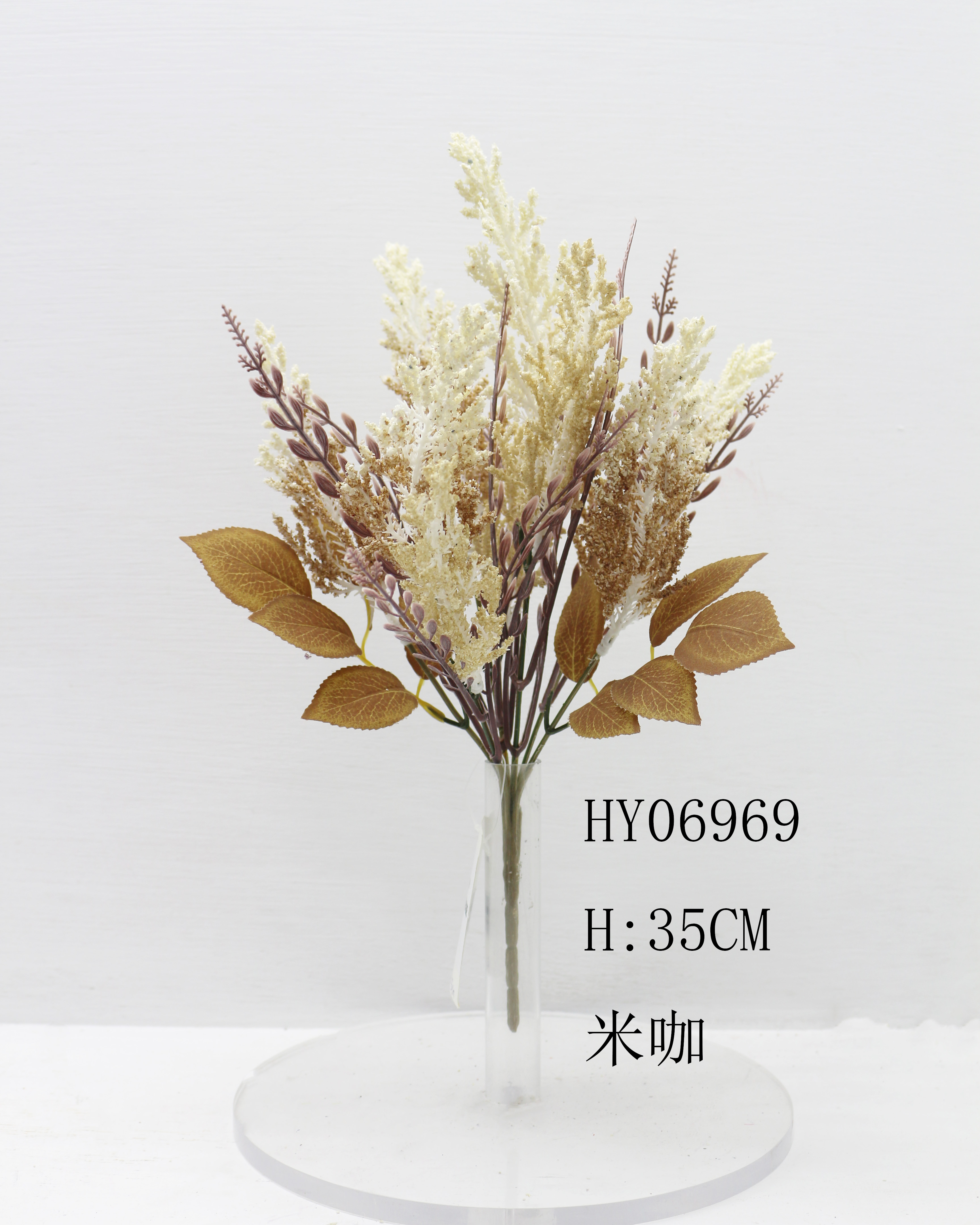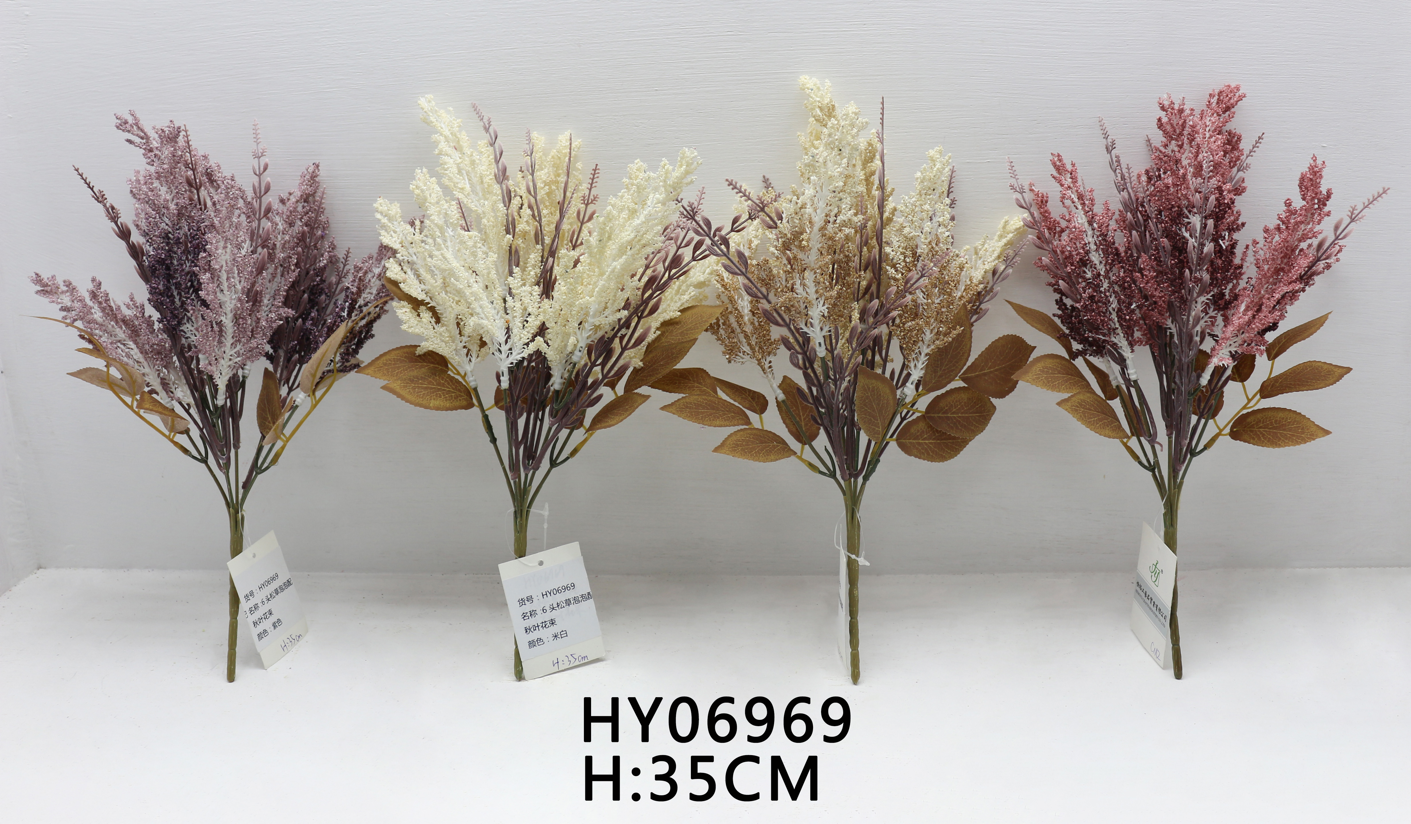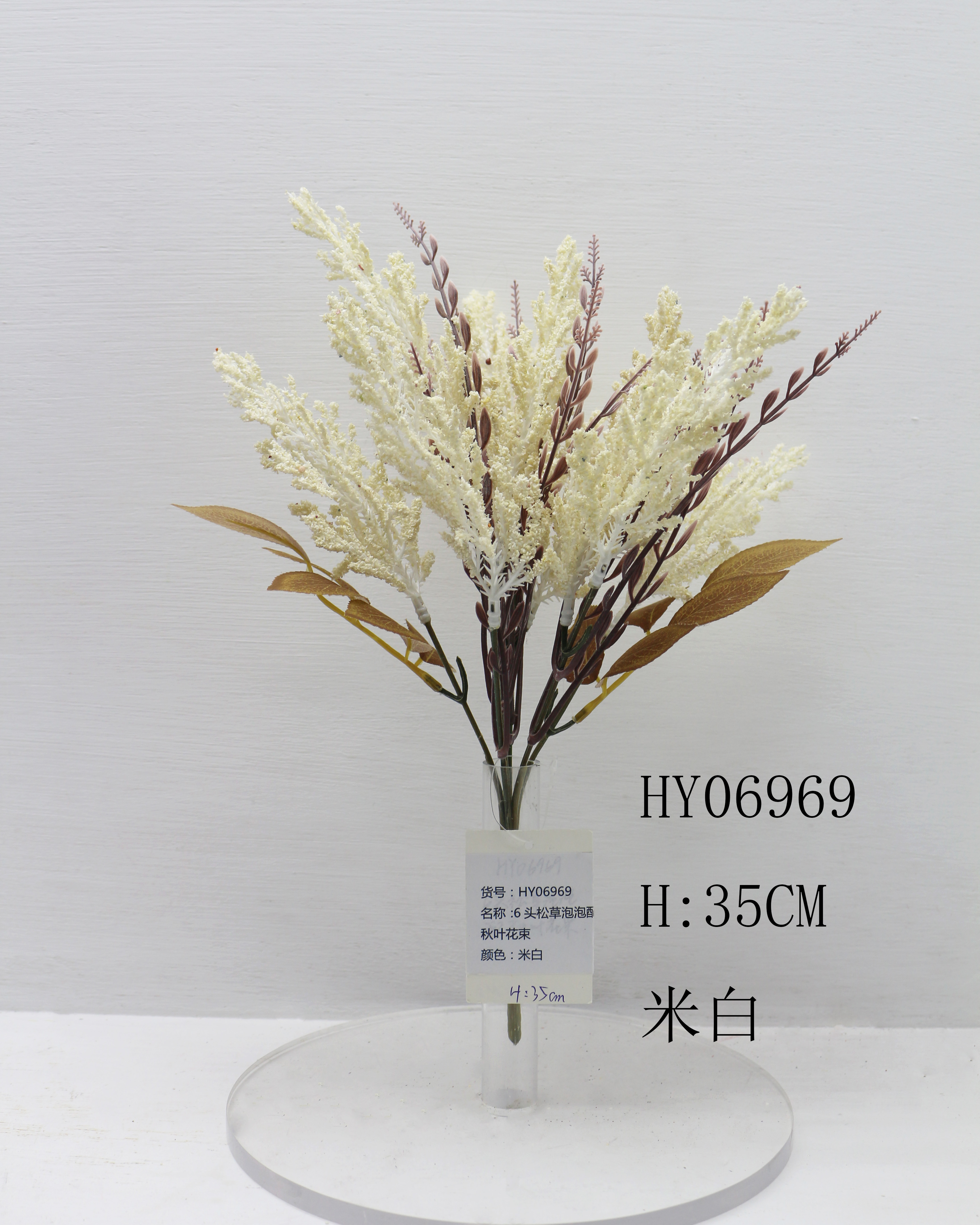 HY06969 6头松草泡泡配秋叶花束